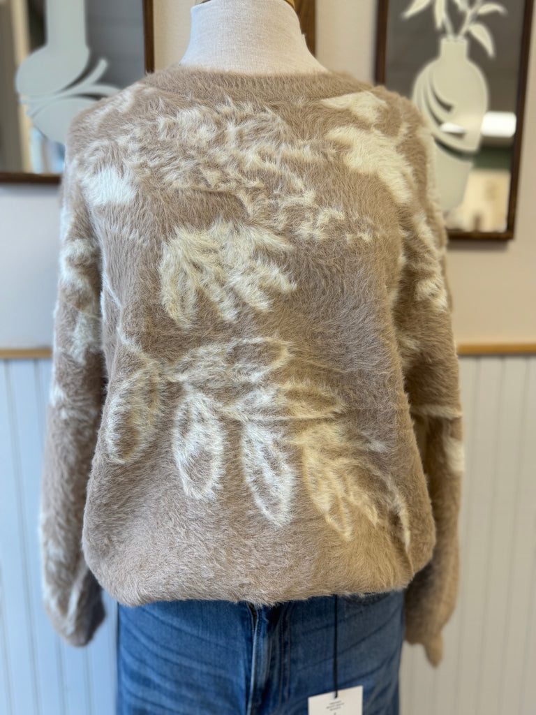 Taupe Fuzzy Floral Sweater